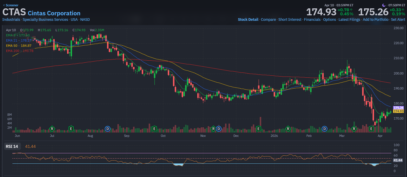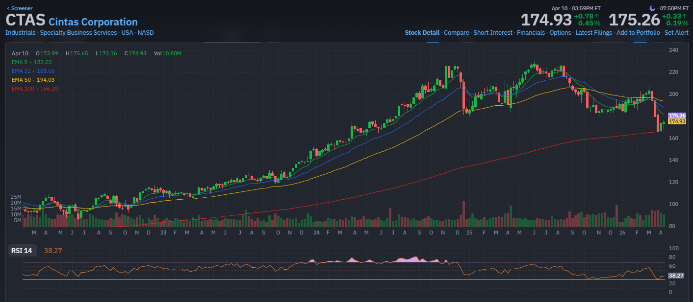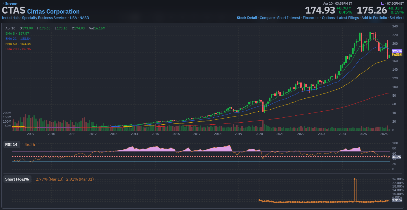 CTAS is the definition of consistent execution. Consistency reduces downside volatility and improves bounce probability at support.