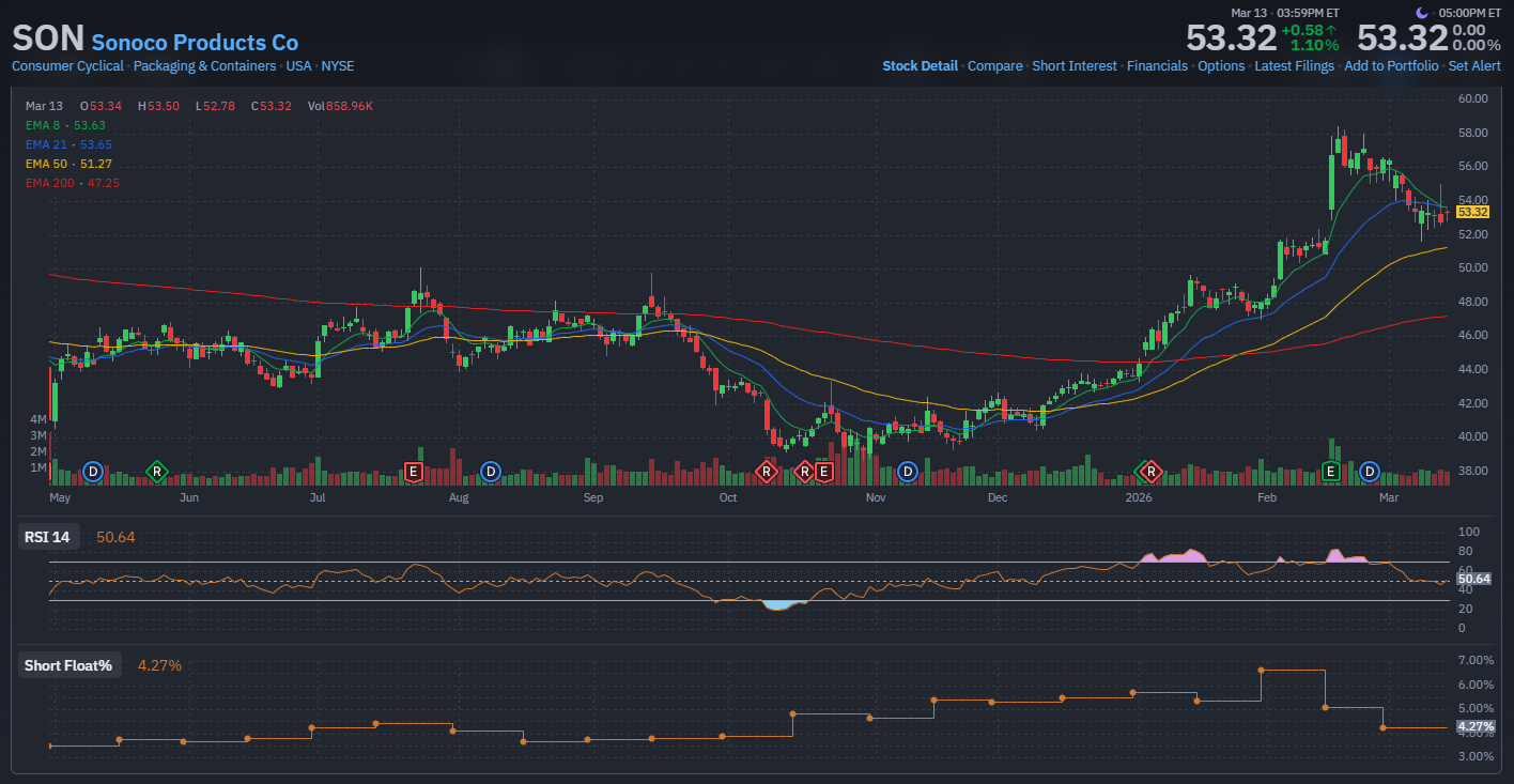 SON is high Tier 1 in my scoring model and the setup checks several important boxes I look for: strong earnings reaction, institutional participation, multi-time frame alignment, and a controlled pullback that held trend support in a volatile broad market tape.